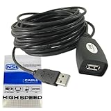 This NSI USB 2.0 active extension cable is a bus-powered extension cable that can be used to increase the length of a device cable without the worry of signal loss and potential performance problems. USB limits a cables length to 33 feet. Any length above 33 feet requires the use of an active cable such as this one. This cable has a signal booster built in. The overall cable length can be extended up to 80 feet by daisy chaining up to 2 of these active cables. The cable must be plugged directly into a USB port (either on the PC or a hub). Use a standard 6-foot, 10-foot, or 15-foot USB cable to reach the desired distance. NSI warrants this product to be free from defects in materials and workmanship for life.You can find 5 meters NSI USB 2.0 active Extension Cable in our store too. Read more