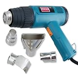 An electric heat gun is an easy to operate power tool with so many practical, time-saving functions that we consider it to be an essential tool for every homeowner and professional workbench. For example, most glue, adhesive, sealant & caulk used commercially today are actually thermosetting polymers that lose their bonding properties when reheated to a relatively-low melting point. That's why a blast from a heat gun is one of the easiest and most effective methods for quick removal of labels, stickers, etc. that otherwise involve very tedious effort (use caution when removing such from thermoplastic material that may have a melting point only slightly higher than the adhesive). Four-piece nozzle set includes: reduction nozzle concentrates output to more-powerful, focused heat blast; deflector nozzle allows diffused, less-intense application; flat spreader produces 3"-wide air flow over larger area and hood nozzle reduces flow to one side for less blow-back. Gun body color may vary from item pictured. Read more